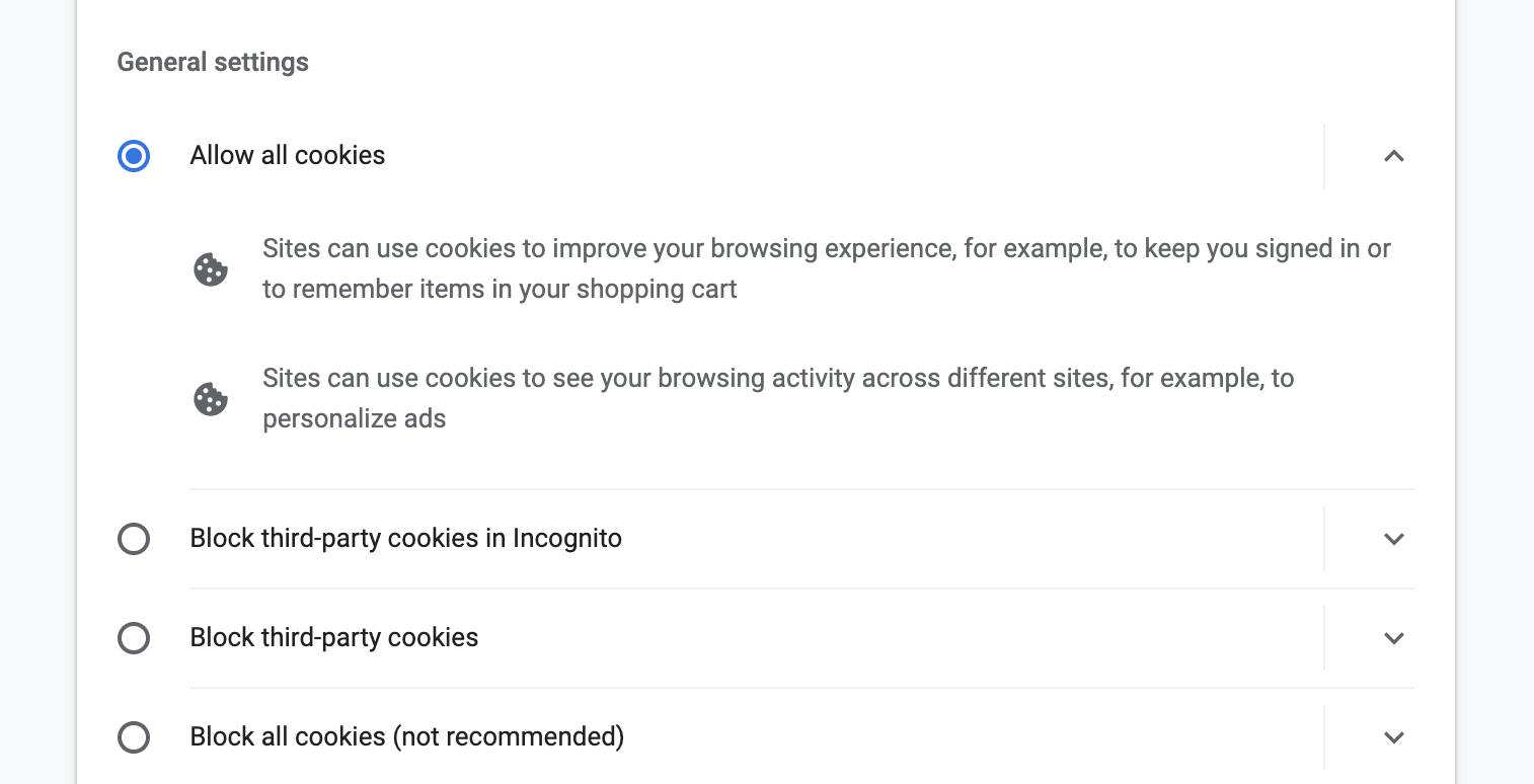 5. Under "General settings", and select "Allow all cookies".
