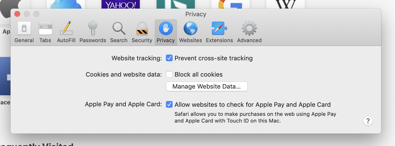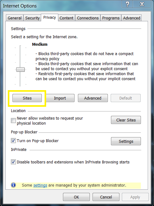 3. Click on the "Privacy" tab and then click on "Sites".