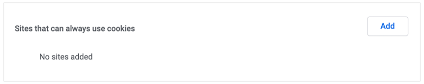 6. If you prefer to block cookies on most sites except for BocaJava.com, you can allow cookies to only be enabled on BocaJava.com by clicking "Add" next to "Sites that can always use cookies".